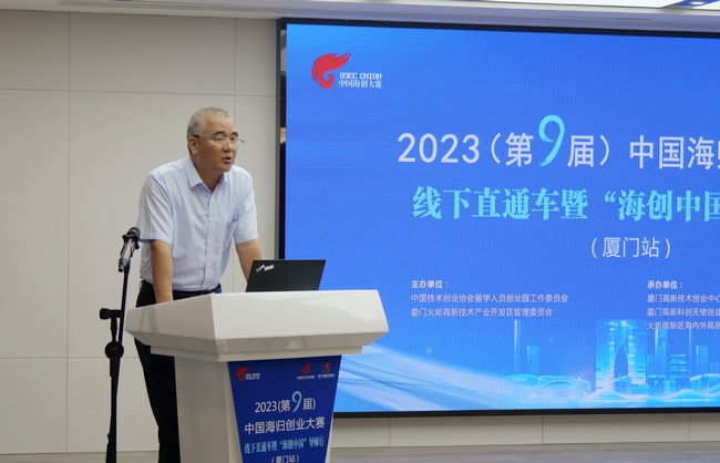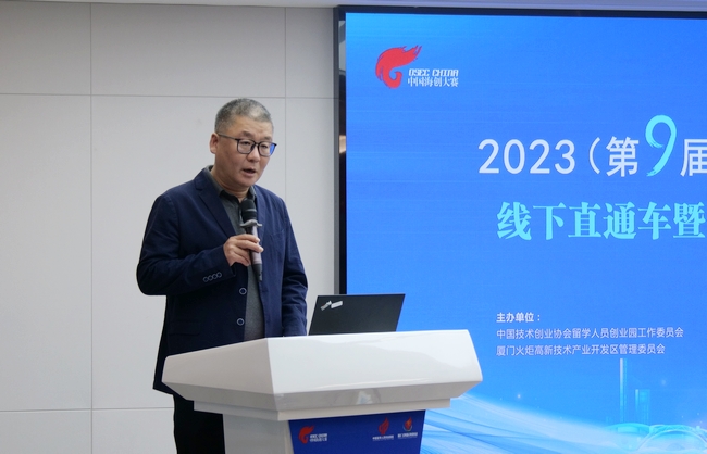 5月22日,2023(第九屆)中國海歸創(chuàng)業(yè)大賽線下直通車暨“海創(chuàng)中國”導(dǎo)師行(廈門站)在廈門留學(xué)人員創(chuàng)業(yè)園圓滿舉辦。活動由中國技術(shù)創(chuàng)業(yè)協(xié)會留學(xué)人員創(chuàng)業(yè)園工作委員會、廈門火炬高技術(shù)產(chǎn)業(yè)開發(fā)區(qū)管理委員會共同主辦,廈門高新技術(shù)創(chuàng)業(yè)中心有限公司(廈門留學(xué)人員創(chuàng)業(yè)園)、廈門高新科創(chuàng)天使創(chuàng)業(yè)投資有限公司、火炬高新區(qū)海內(nèi)外高層次人才創(chuàng)業(yè)服務(wù)驛站承辦。中國技術(shù)創(chuàng)業(yè)協(xié)會副理事長、留學(xué)人員創(chuàng)業(yè)園工作委員會專職副會長兼秘書長郎靖,留創(chuàng)園工委會副秘書長胡頌華,廈門高新技術(shù)創(chuàng)業(yè)中心有限公司總經(jīng)理鄭鞏固等相關(guān)單位負(fù)責(zé)人及5位評委導(dǎo)師出席活動。
