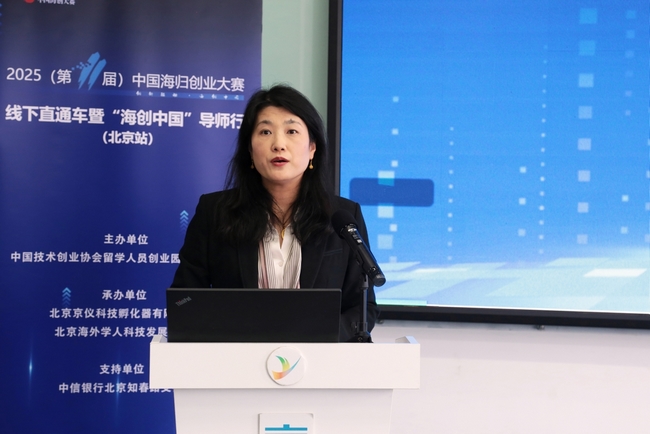 59日下午,2025(第11屆)中國海歸創業大賽線下直通車暨海創中國導師行(北京站)活動在京儀科技孵化器(中關村京儀留學人員創業園)成功舉辦。活動由中國技術創業協會留學人員創業園工作委員會主辦,北京京儀科技孵化器有限公司、北京海外學人科技發展中心承辦,特邀華能長投、凌霄資本、長赫投資、清控科創、長城戰略研究所等機構現場觀摩。留創園工委會執行秘書長劉洪志、京儀集團副總經理王莉、京儀科技孵化器董事長楊曉霞出席活動。