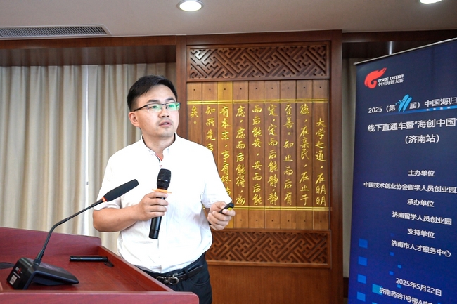 5月22日,由中國技術創(chuàng)業(yè)協(xié)會留學人員創(chuàng)業(yè)園工作委員會主辦、濟南留學人員創(chuàng)業(yè)園承辦、濟南市人才服務中心支持的2025(第11屆)中國海歸創(chuàng)業(yè)大賽線下直通車暨“海創(chuàng)中國”導師行(濟南站)活動在濟南藥谷成功舉辦。中國技術創(chuàng)業(yè)協(xié)會副理事長、留學人員創(chuàng)業(yè)園工作委員會專職副會長兼秘書長郎靖出席活動并講話,濟南留學人員創(chuàng)業(yè)園、創(chuàng)業(yè)服務中心副主任劉麗致辭。